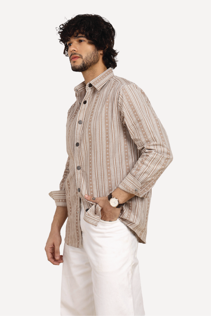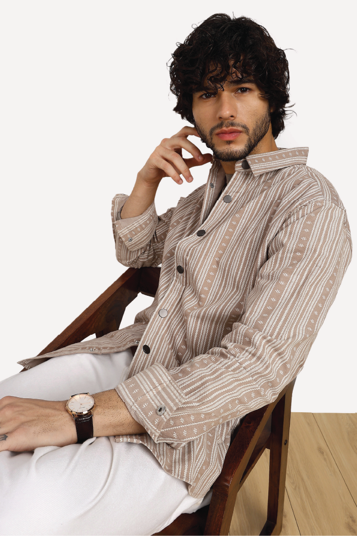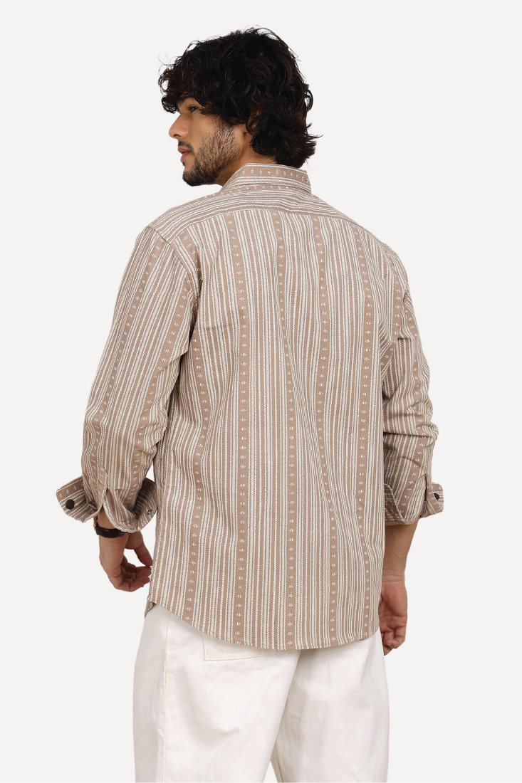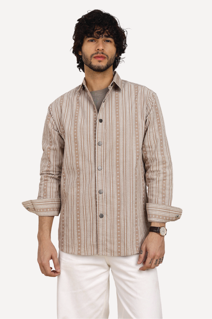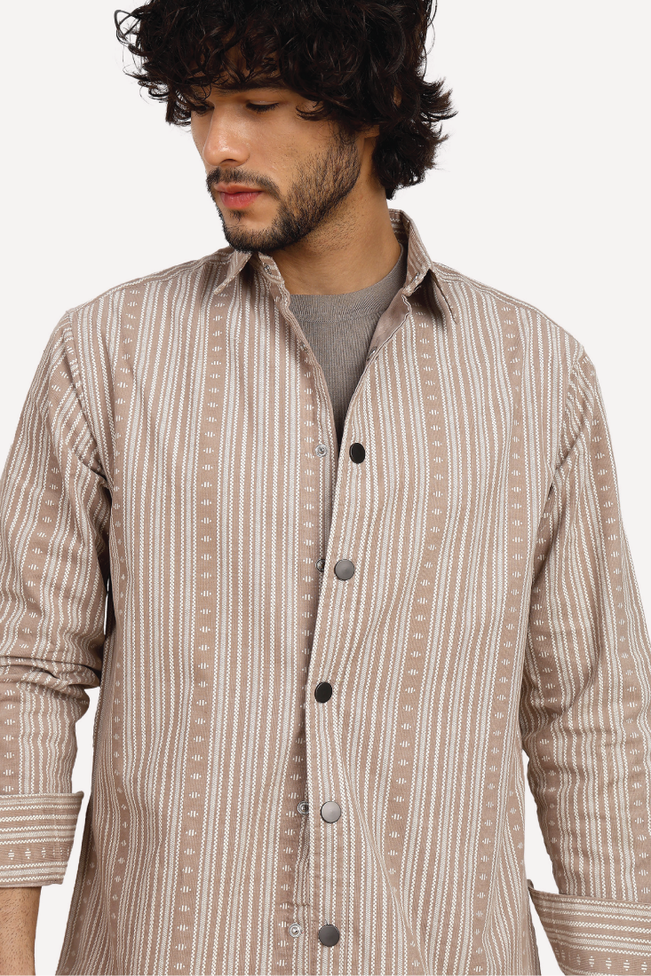 Relaxed fit cotton shirt. Featuring a collared neckline, long sleeves with buttoned cuffs, and snap button fastening.