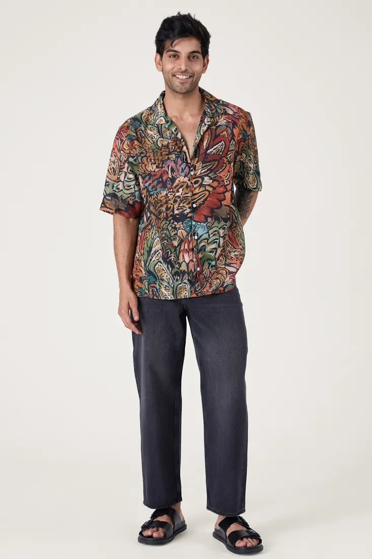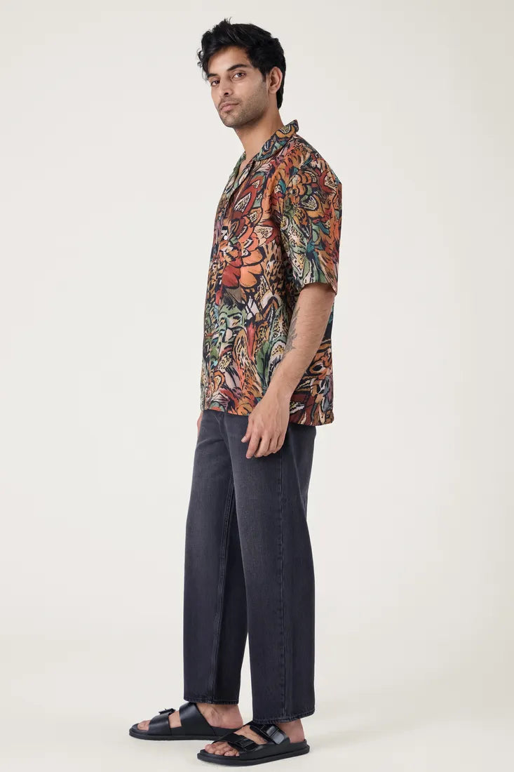 Relaxed fit cuban collar shirt made of Lyocell. Featuring a camp collar, short sleeves and button up front.