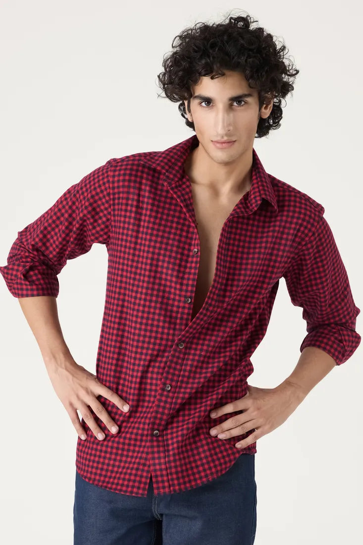 Relaxed fit collared shirt made of 100% cotton brushed fabric. Featuring long sleeves with buttoned cuffs, a chest patch pocket and a button-up front.