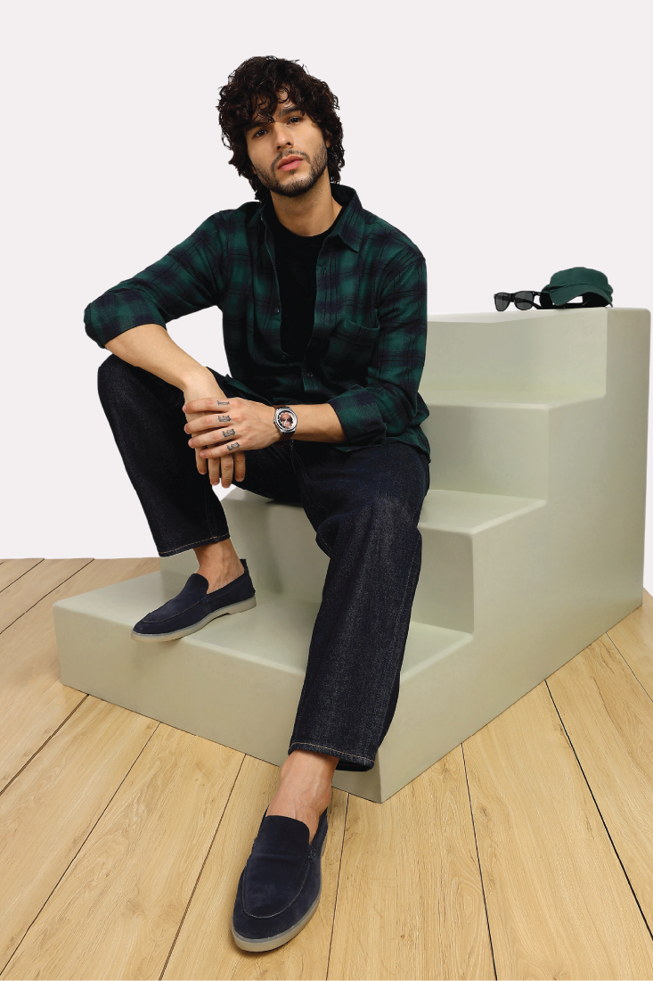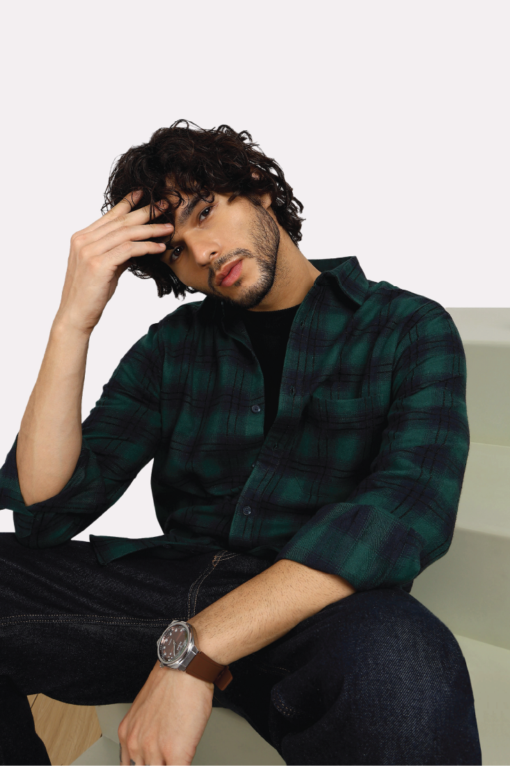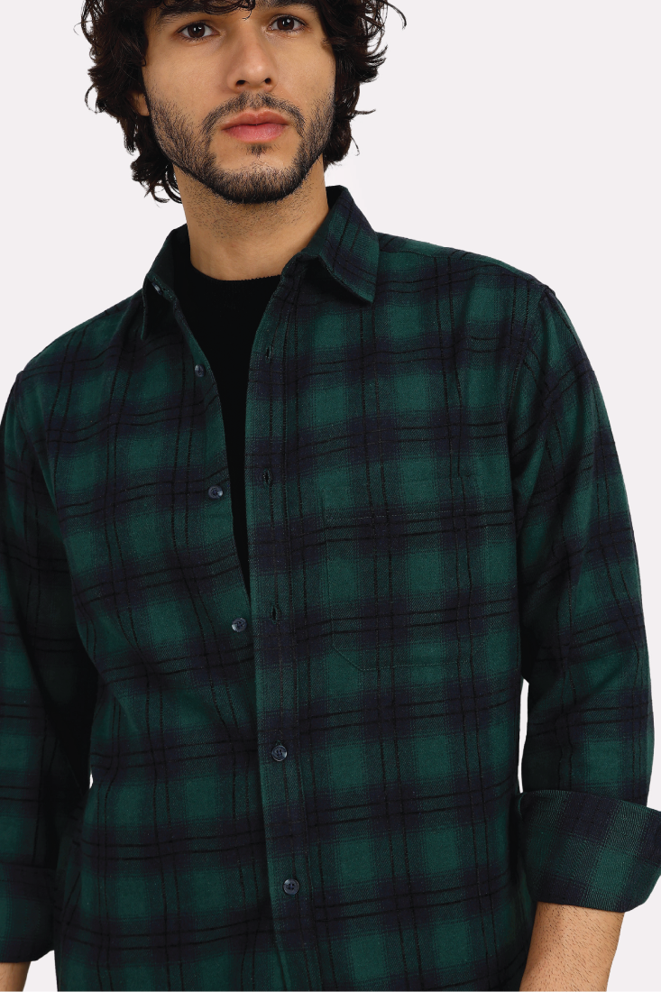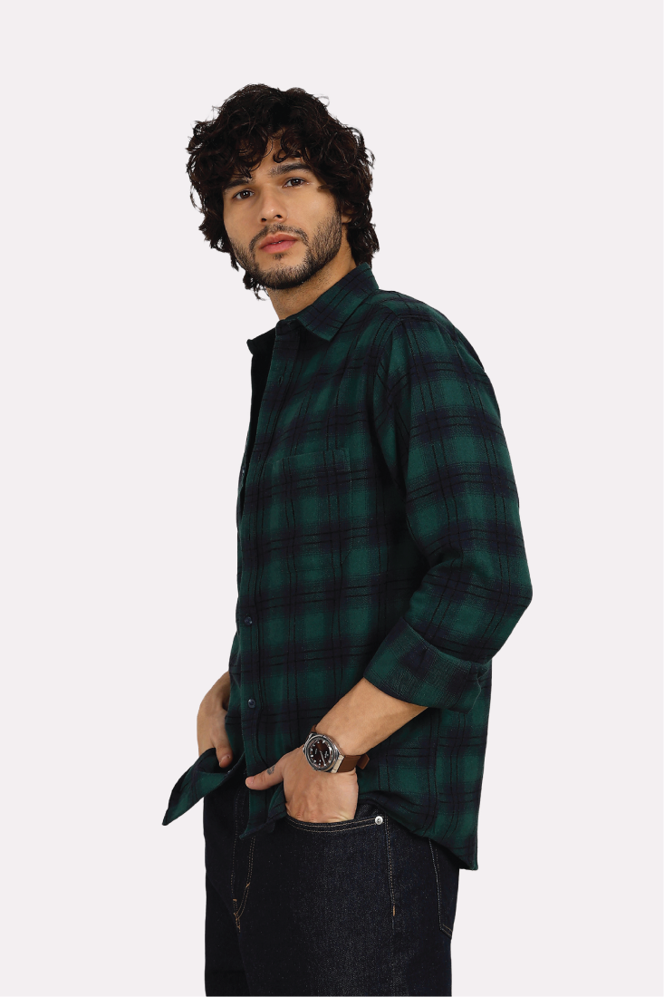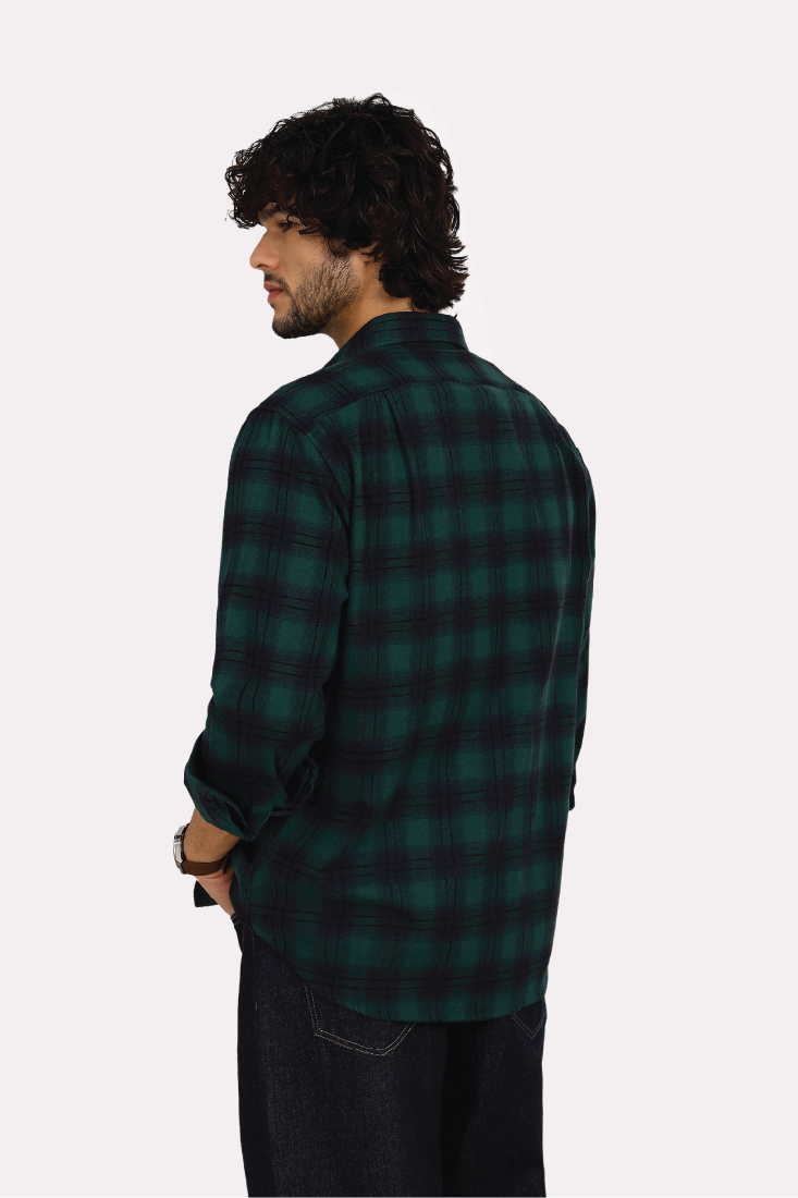 Relaxed fit collared shirt made of 100% cotton brushed fabric. Featuring long sleeves with buttoned cuffs, a chest patch pocket with contrast fabric details and a button-up front.