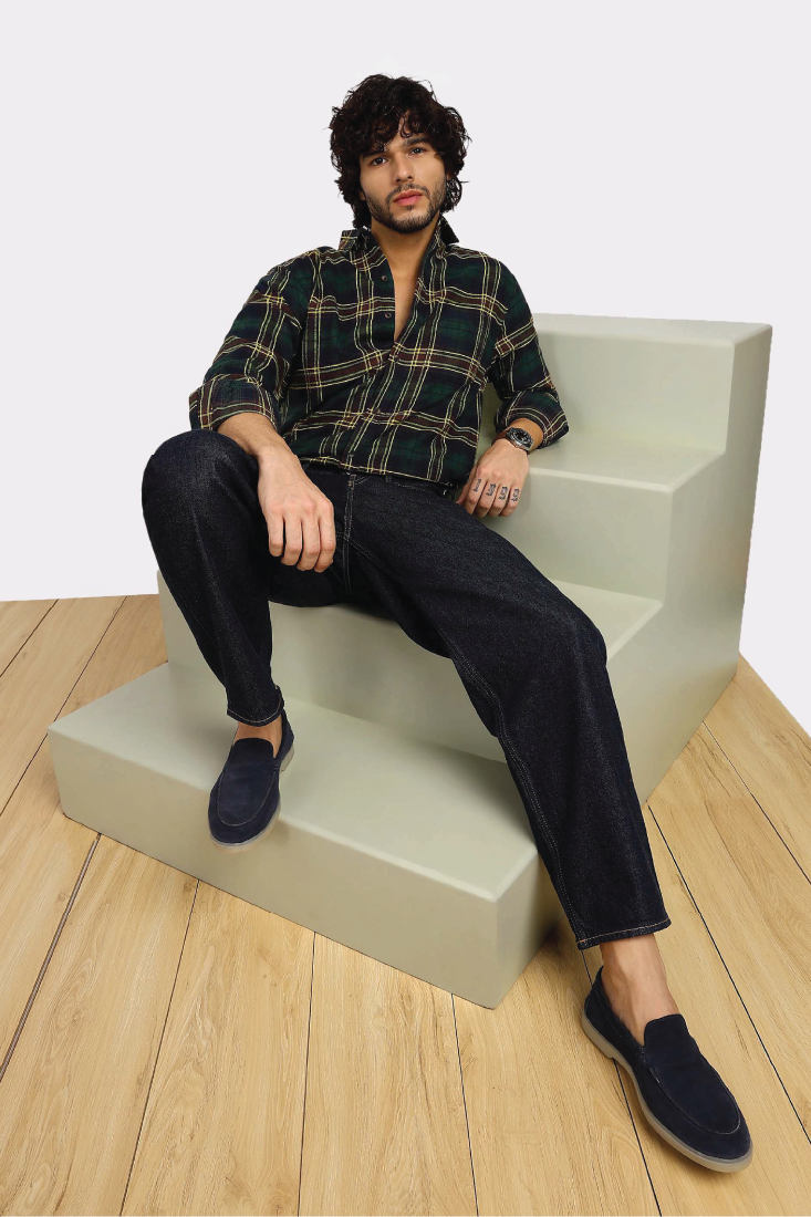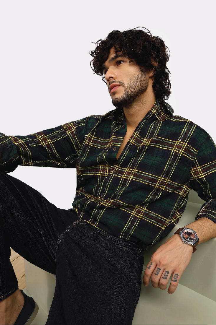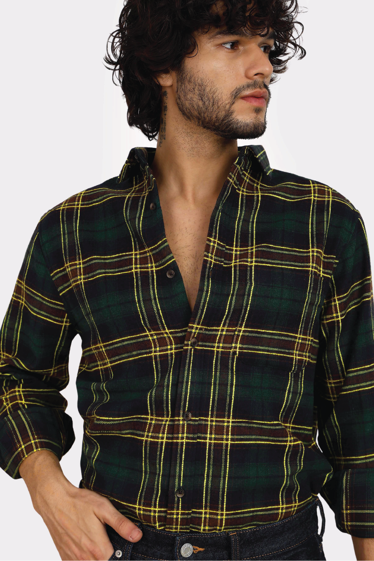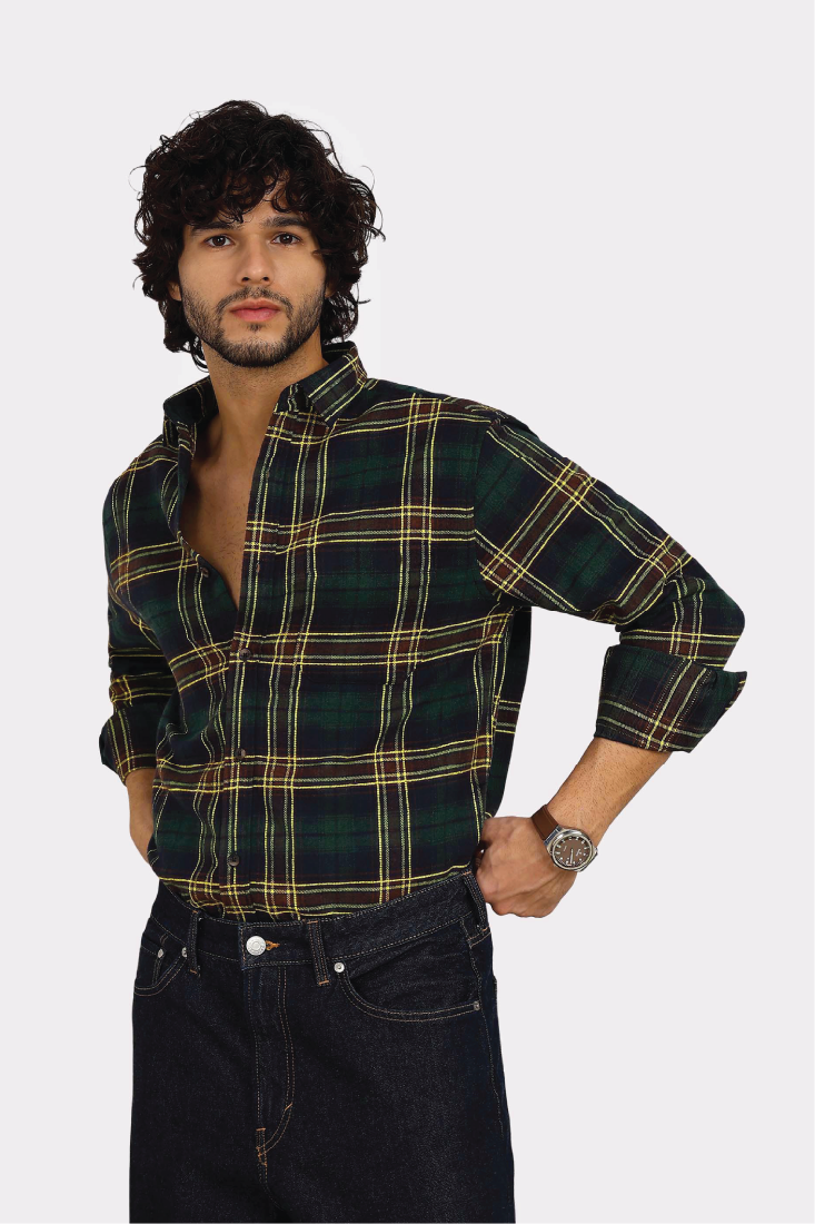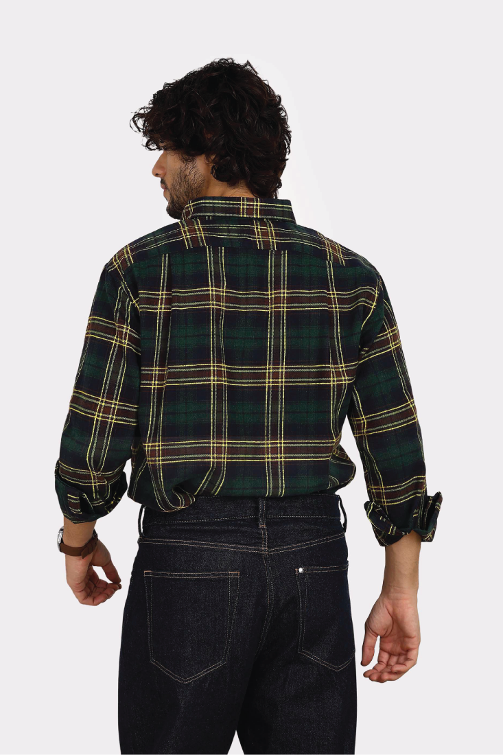 Relaxed fit collared shirt made of 100% cotton brushed fabric. Featuring long sleeves with buttoned cuffs, a chest patch pocket with contrast fabric details and a button-up front.