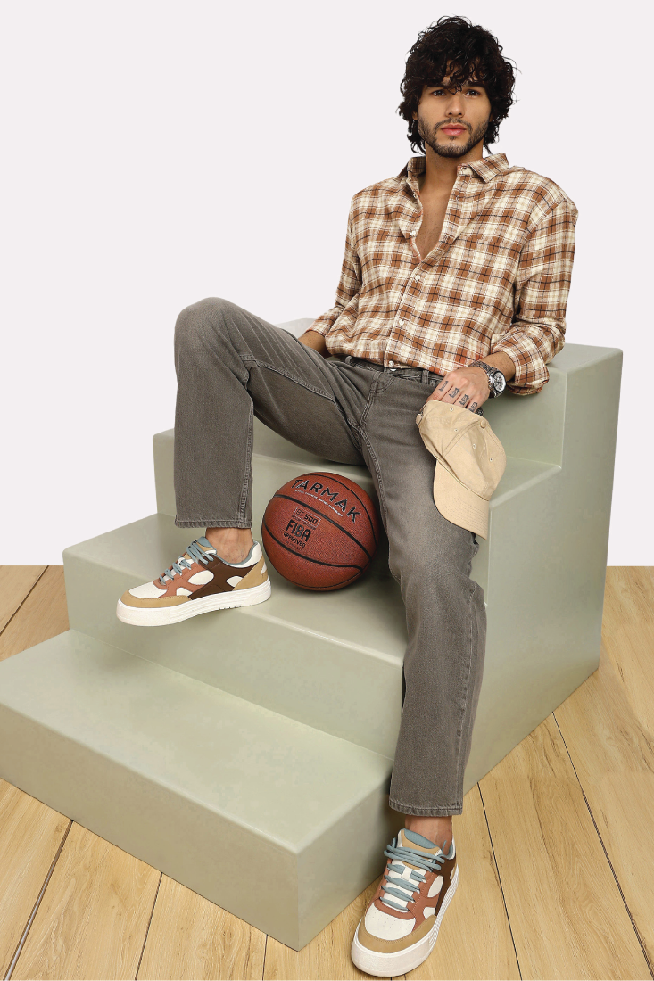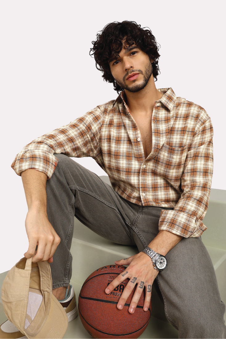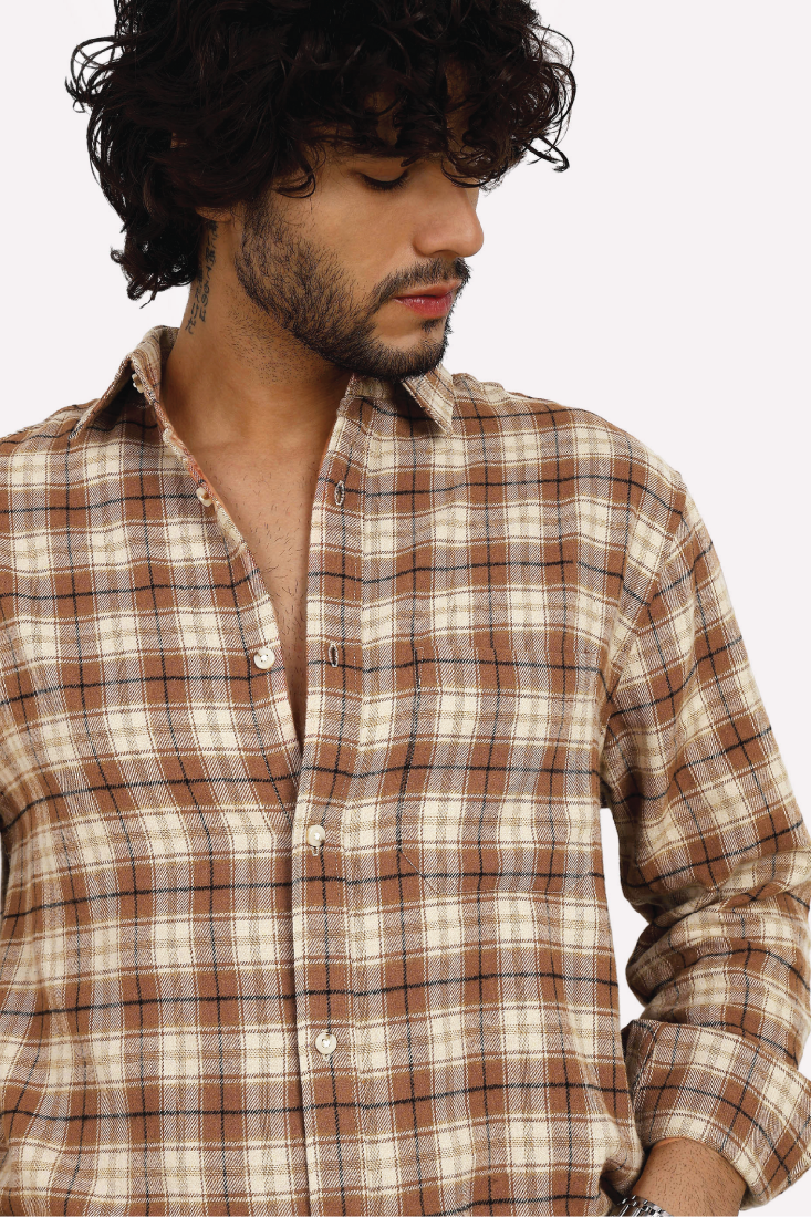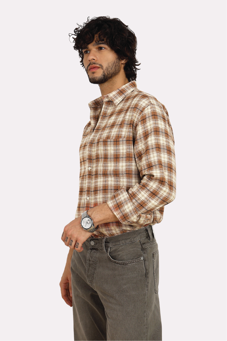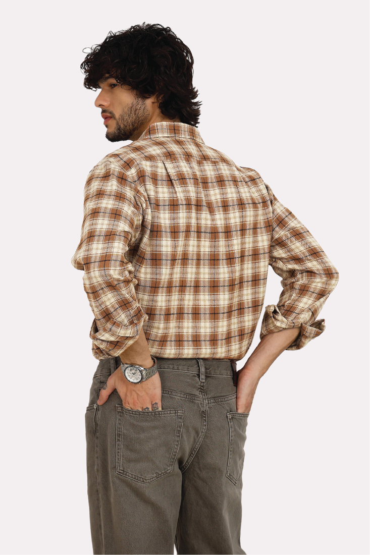 TAN CHECK BRUSHED COTTON SHIRT