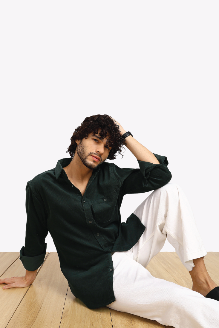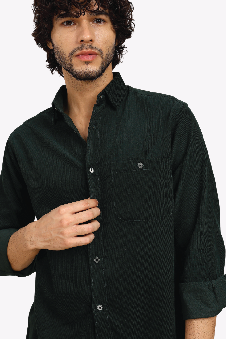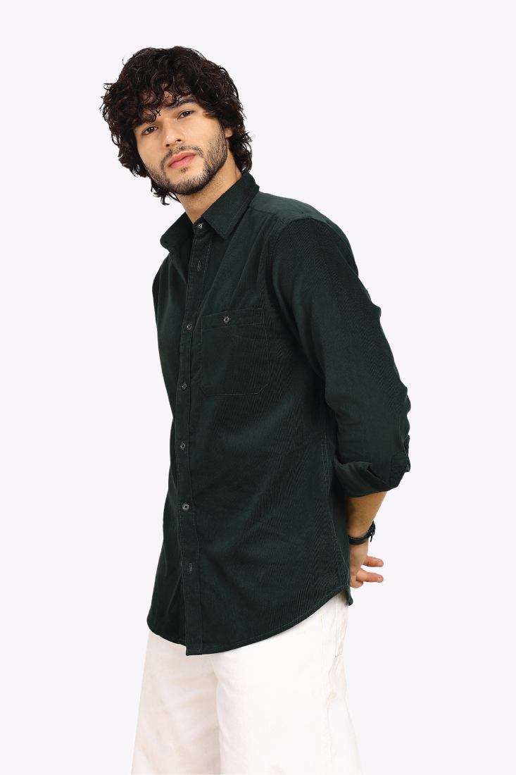 Relaxed fit shirt crafted from light weight corduroy. Featuring a collared neckline and long sleeves with buttoned cuffs. Patch pocket with button on the chest Button-up front.