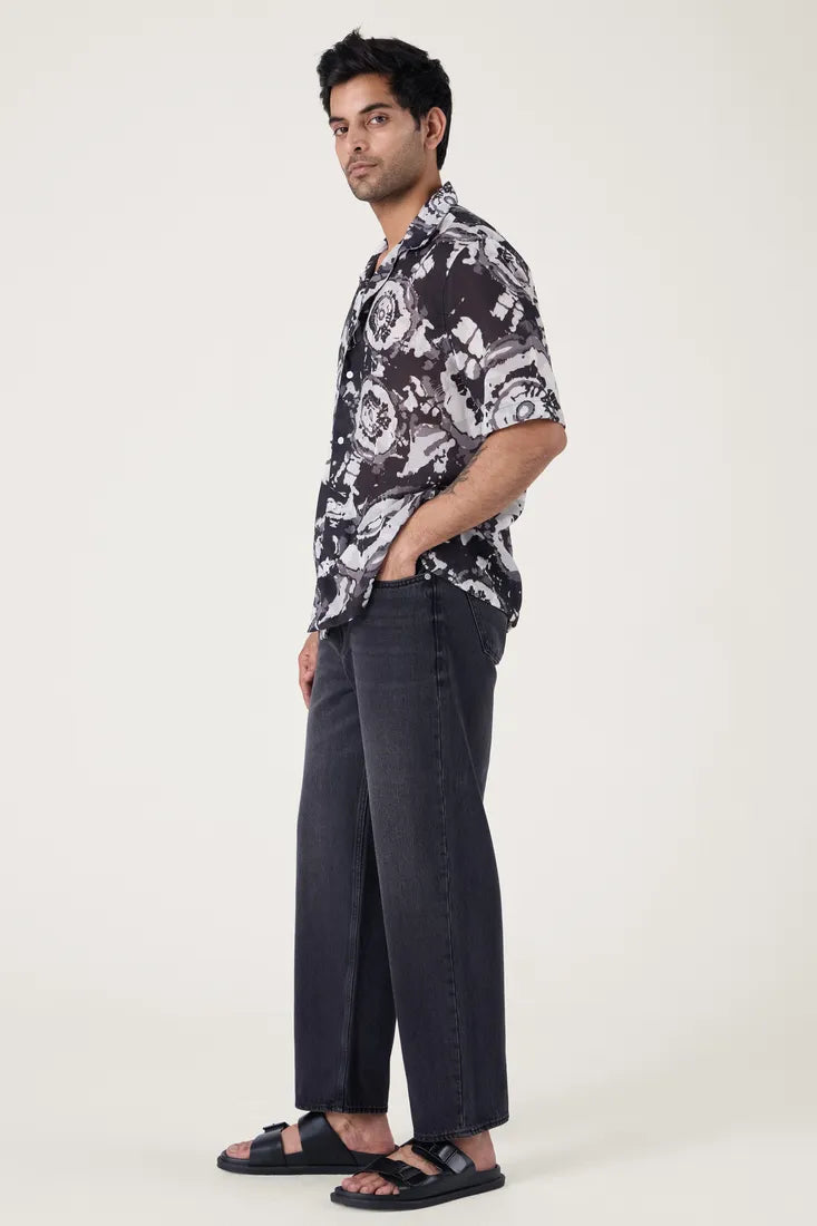 Relaxed fit cuban collar shirt made of Lyocell. Featuring a camp collar, short sleeves and button up front.