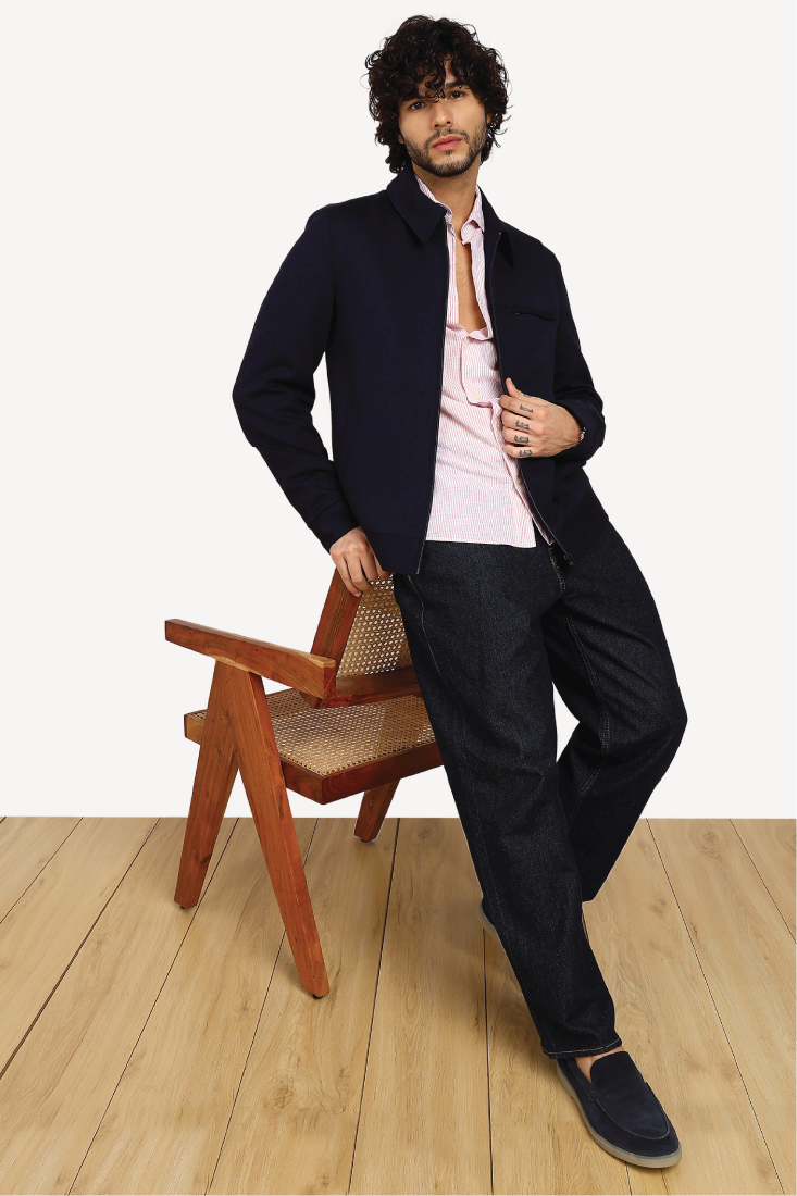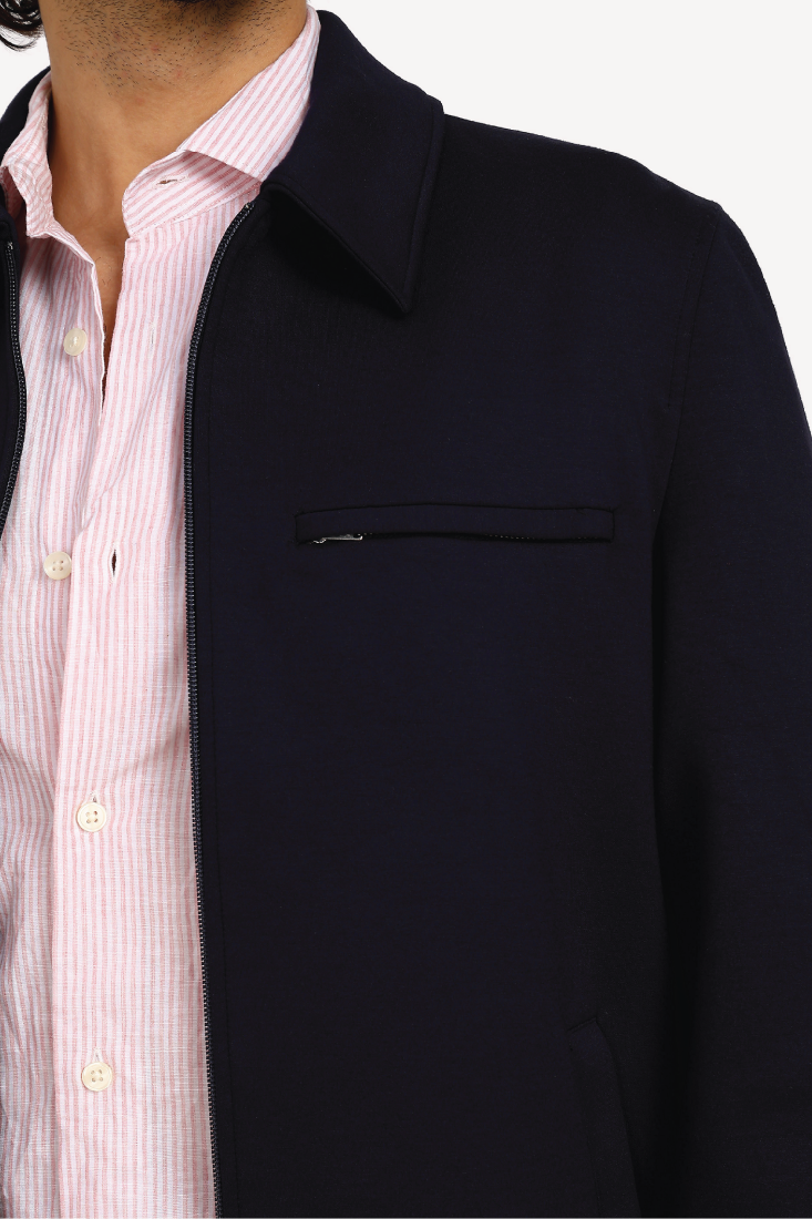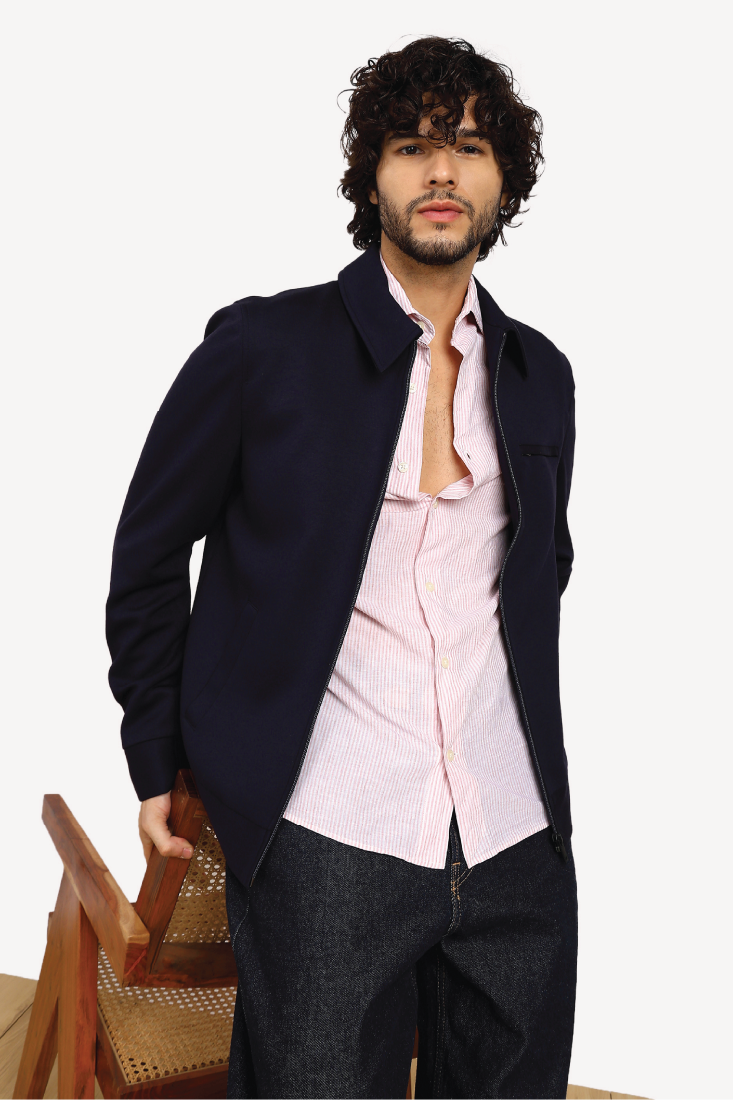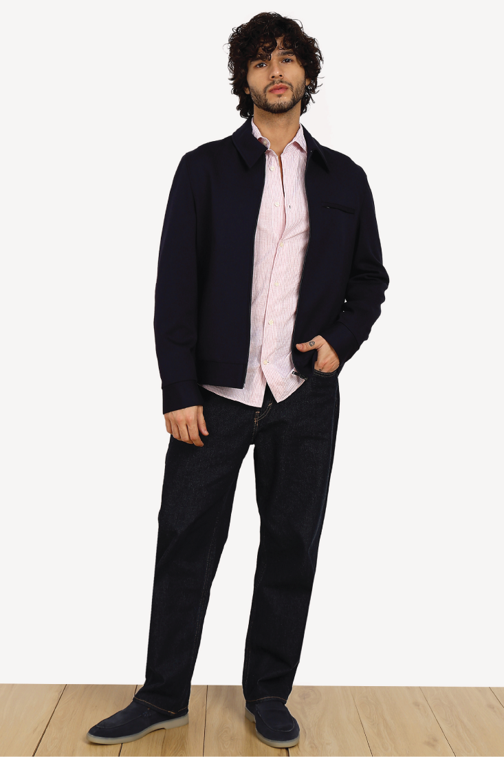 Relaxed fit classic harrington collar jacket. Featuring a lapel collar, long sleeves , a welt pocket on the chest with zip and zip fastening at the front.