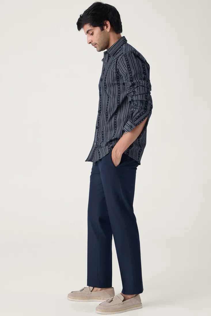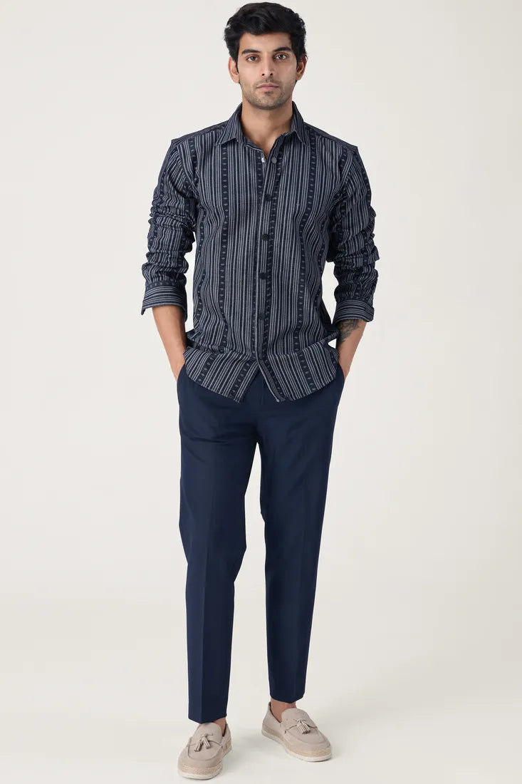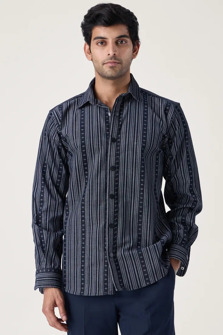 Relaxed fit cotton shirt. Featuring a collared neckline, long sleeves with buttoned cuffs, and snap button fastening.