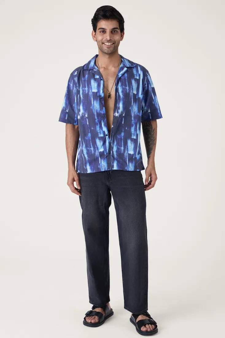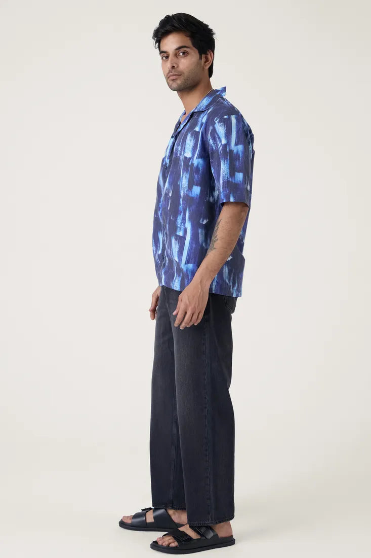 Relaxed fit cuban collar shirt made of 100% cotton. Featuring a camp collar, short sleeves and button up front.