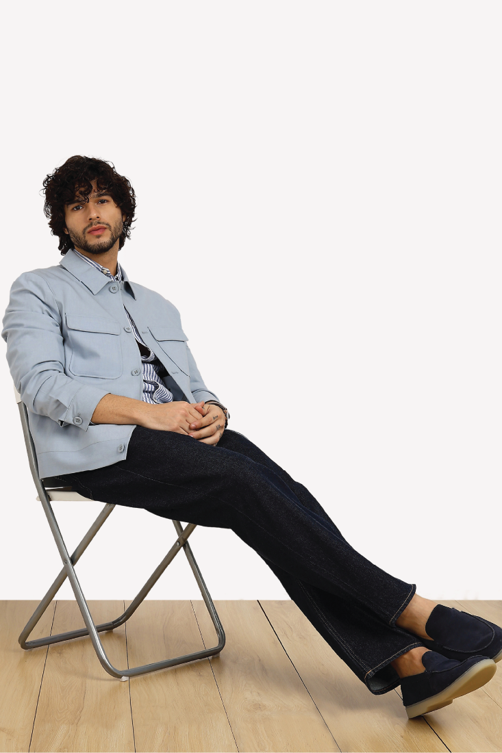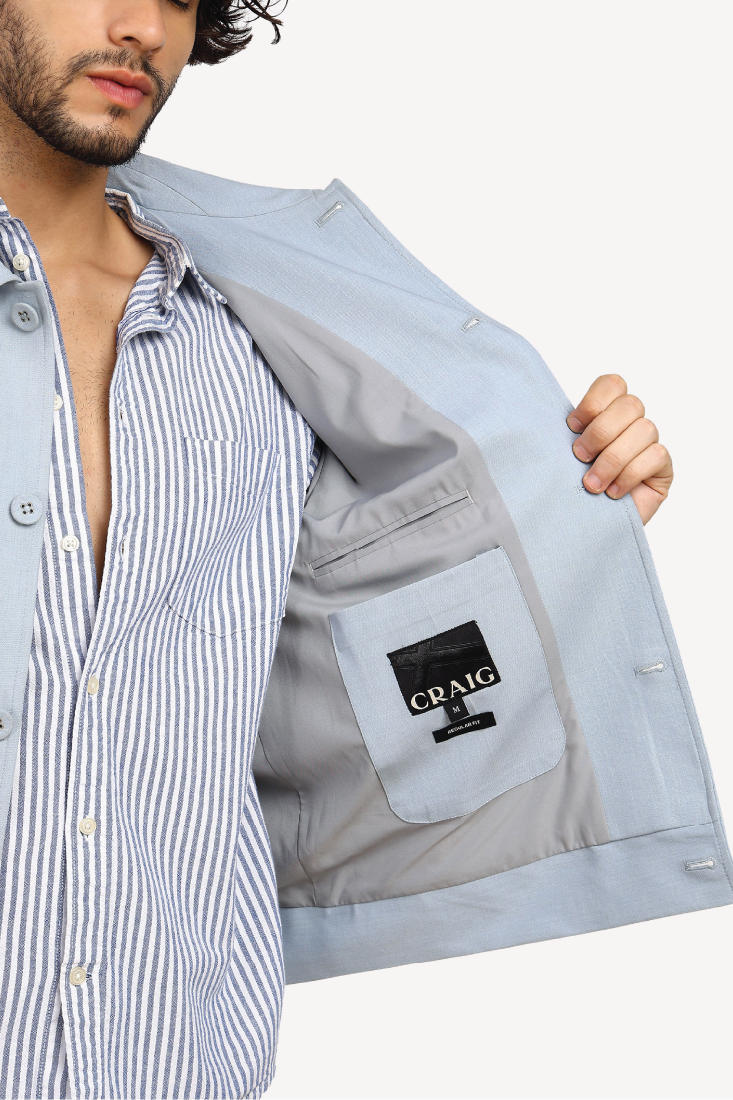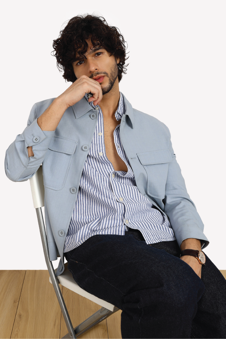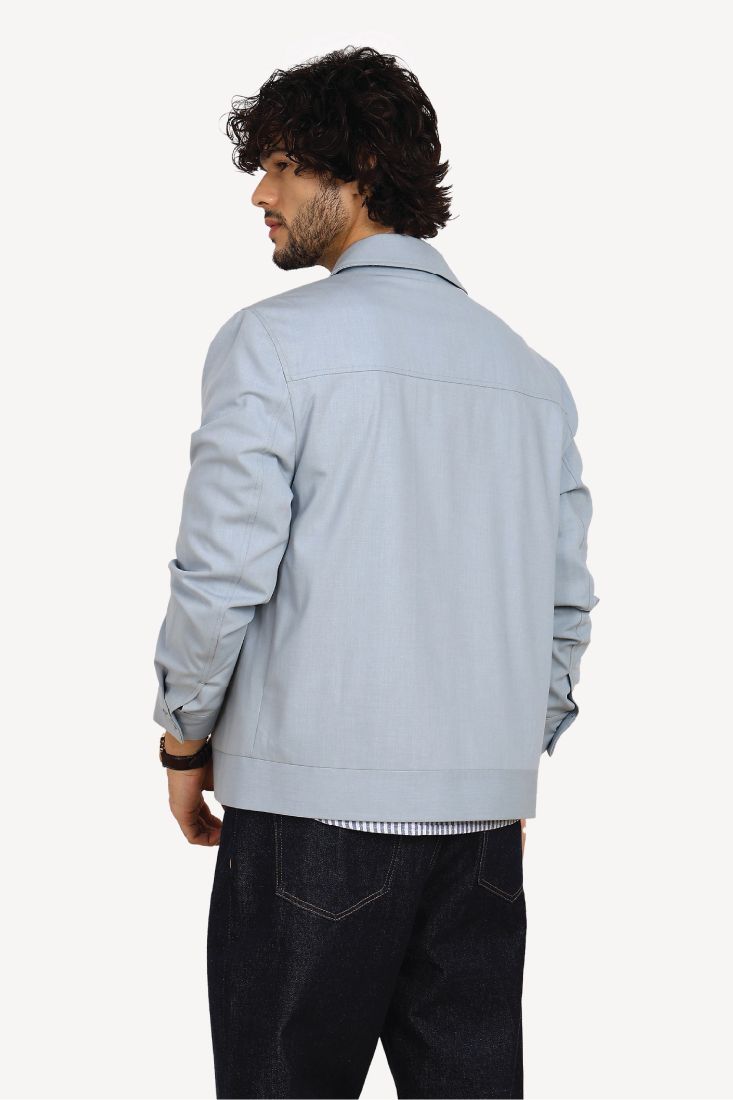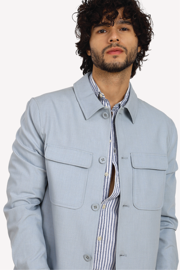 Boxy, lightweight jacket made in blended viscose fabric. Featuring two patch pockets with flap at front, shirt collar and fabric covered styled button.